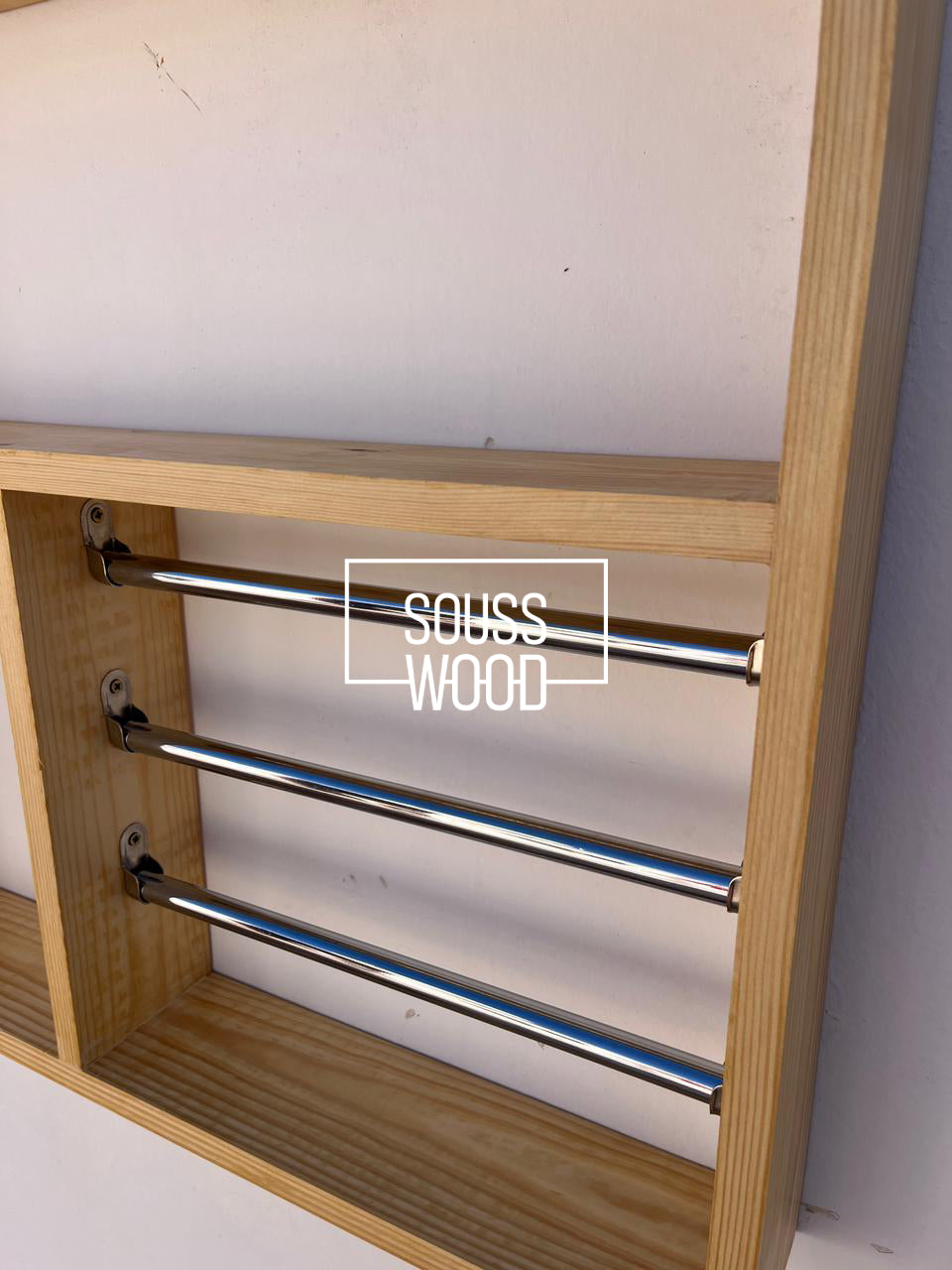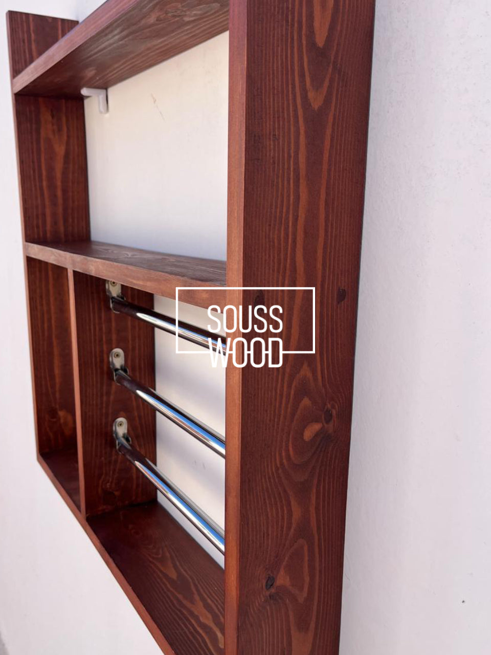 أول حاجة مخدوم من خشب طبيعي ماشي صناعي، ثاني حاجة كيهز 3 ديال رولوات، المنيوم، سولوفان، كلينكس. وفيه جوج طبقات باش تحطي كيسان العطريقة وبزاف ديال اللوازم الأخرى حسب اختيارك